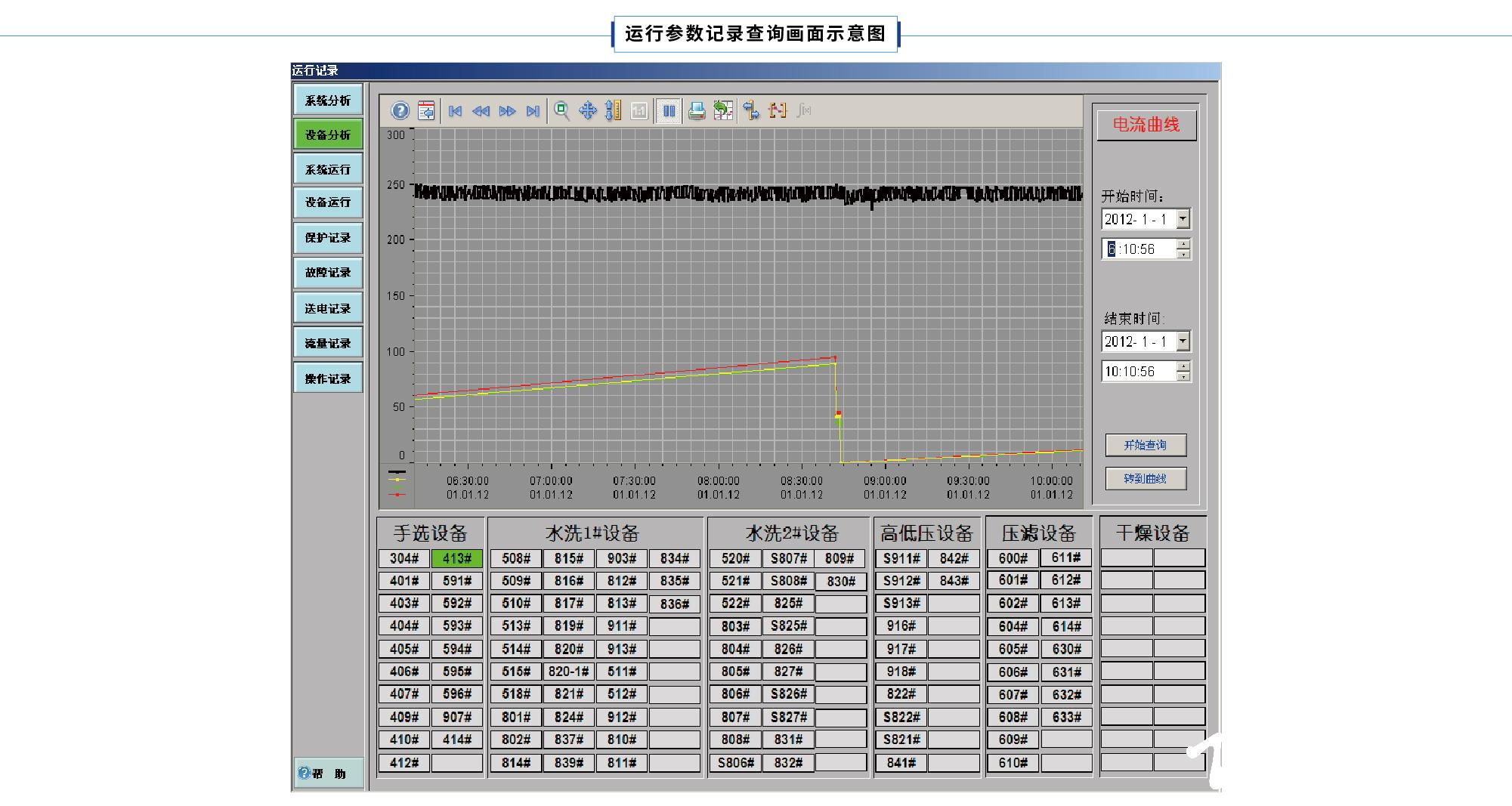 13)運行時間統計:對每個設備的本次以及當天運行時間進行統計,為生產分析提供時間依據。
